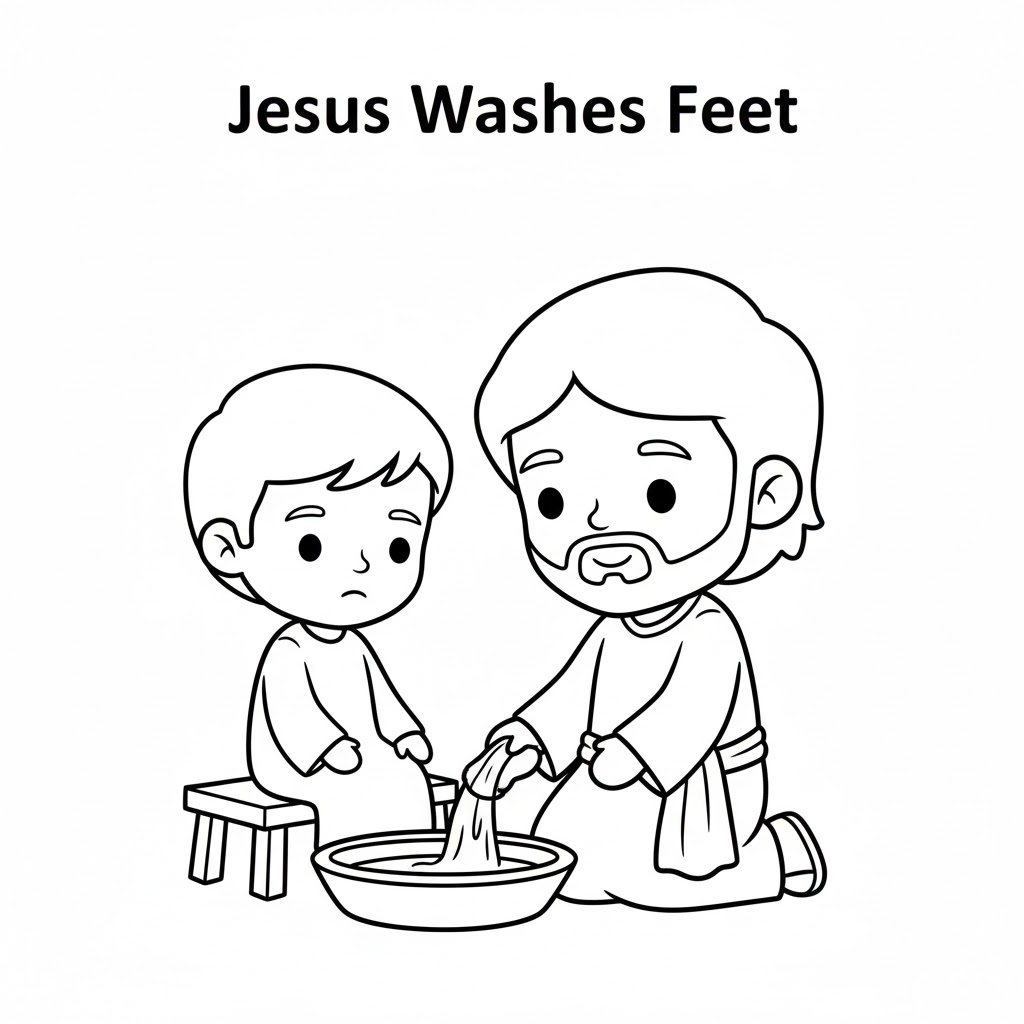 성경이야기: 예수님이 제자들과 마지막 식사를 하셨어요. 예수님은 자리에서 일어나 수건을 허리에 두르셨어요. 그리고 제자들의 더러운 발을 깨끗하게 씻겨주셨어요. 예수님은 가장 높은 분이지만 우리를 섬기러 오셨어요. 우리도 예수님처럼 서로 섬기는 마음을 가져야 해요.