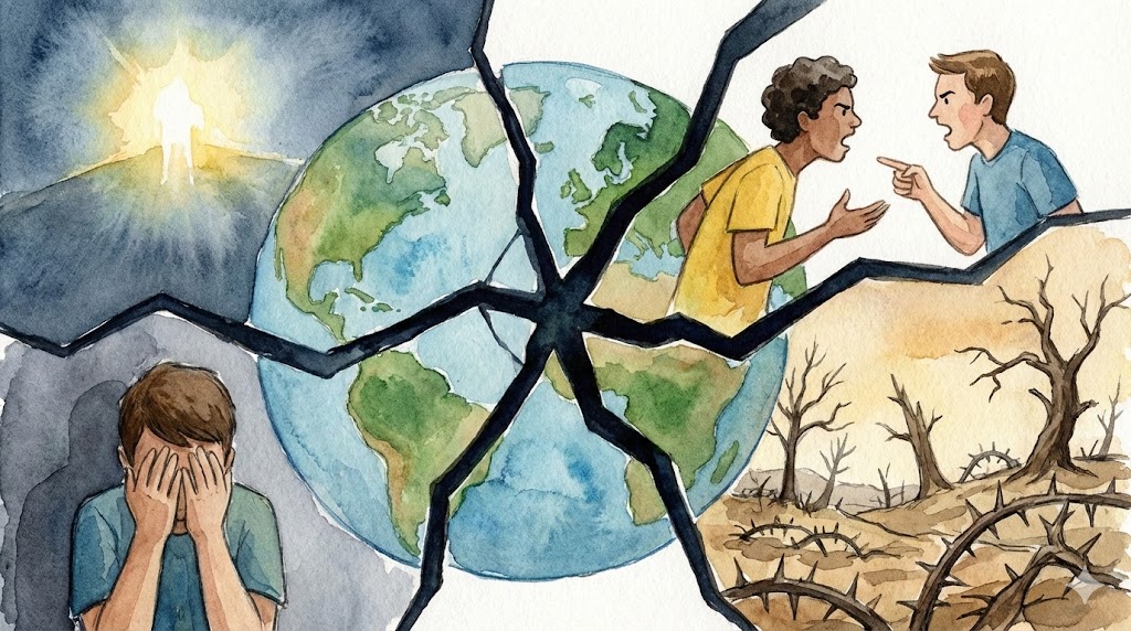 이 모든 아픔과 고통은, 바로 우리가 하나님을 떠나 죄를 지었기 때문에 생긴 일이에요."
