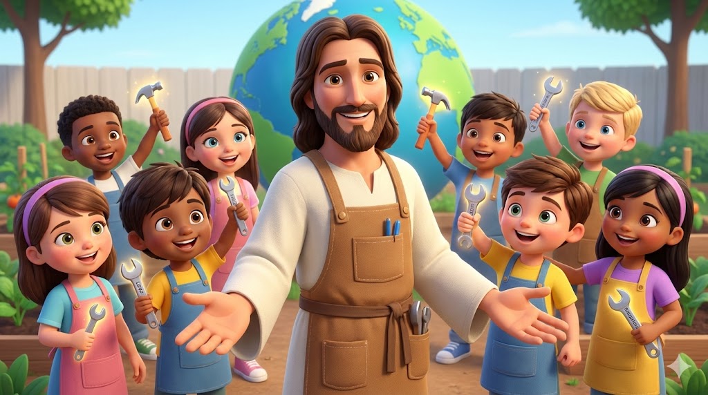 "예수님의 수리는 지금도 계속되고 있어요. 그런데 예수님은 혼자 일하지 않으시고 우리에게 손을 내미세요. '얘들아, 나랑 같이 이 세상을 고치지 않을래? 내 조수(동역자)가 되어주렴!'