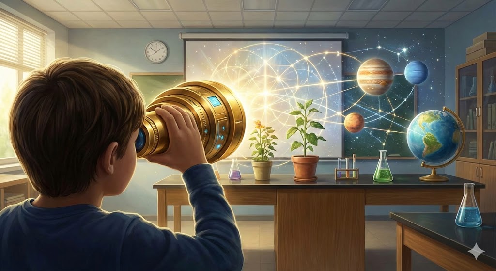 "하나님의 말씀은 눈에 보이지 않아요. 그래서 우리에게는 **'믿음'**이라는 특수 렌즈가 필요해요. 믿음의 렌즈로 세상을 투시해 보면, 학교에서 배우는 과학 법칙 뒤에 숨겨진 하나님의 지혜를 발견할 수 있어요. 보이는 현상 너머에서 세상을 돌보시는 하나님의 손길을 찾아내는 것이 진짜 똑똑한 유년부 어린이죠!"